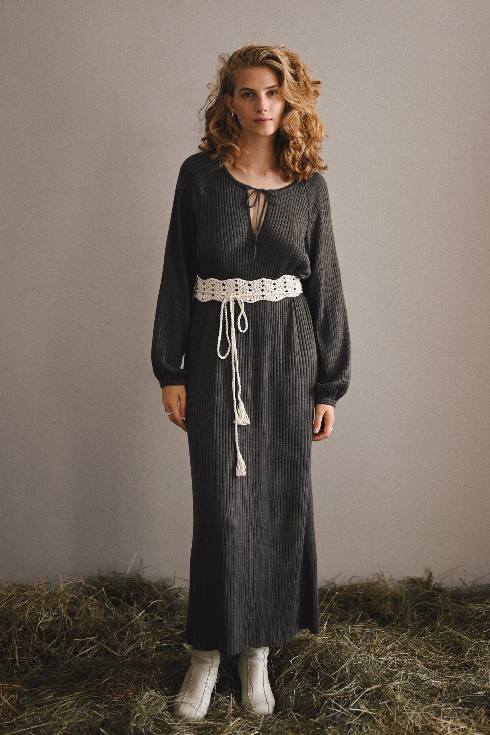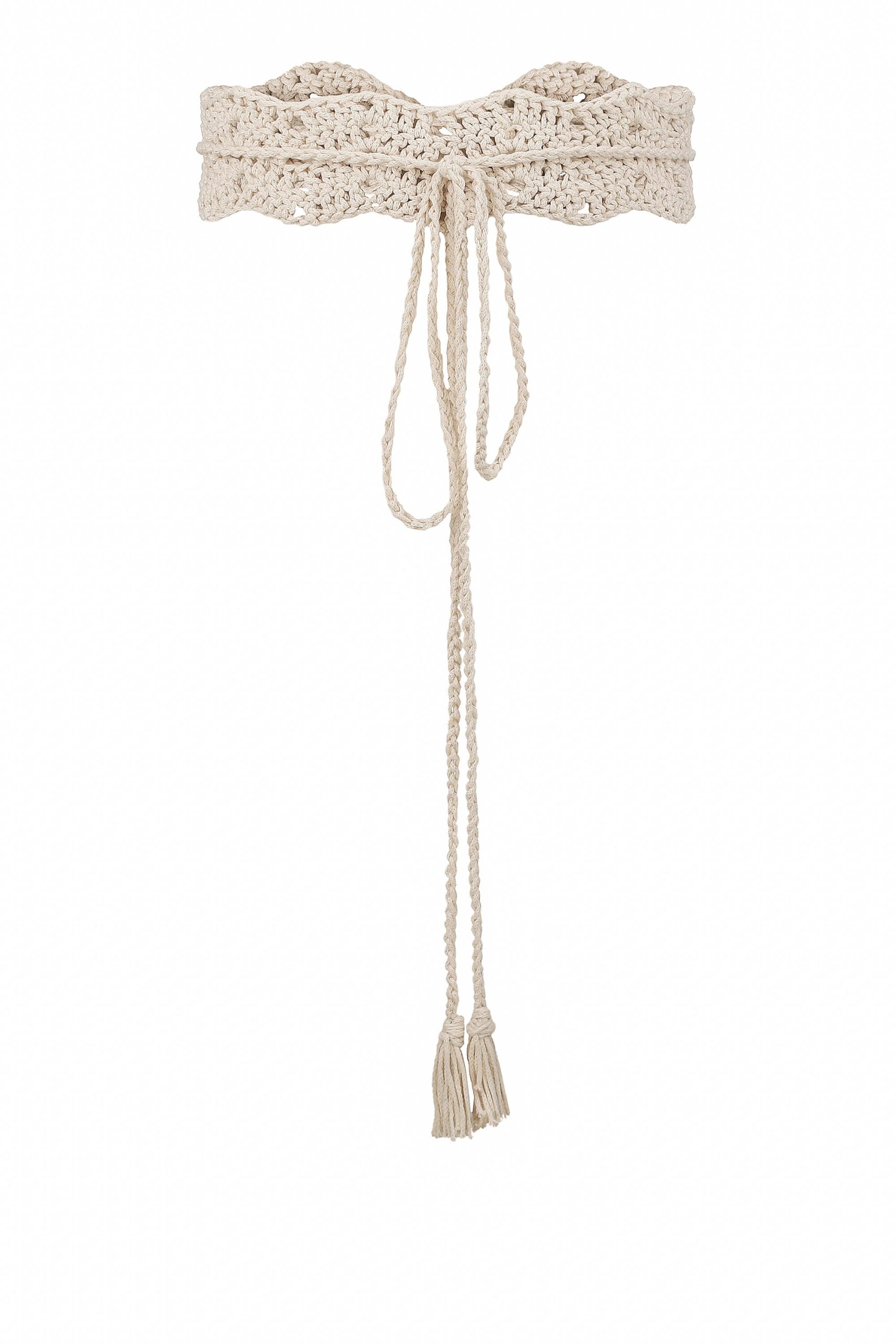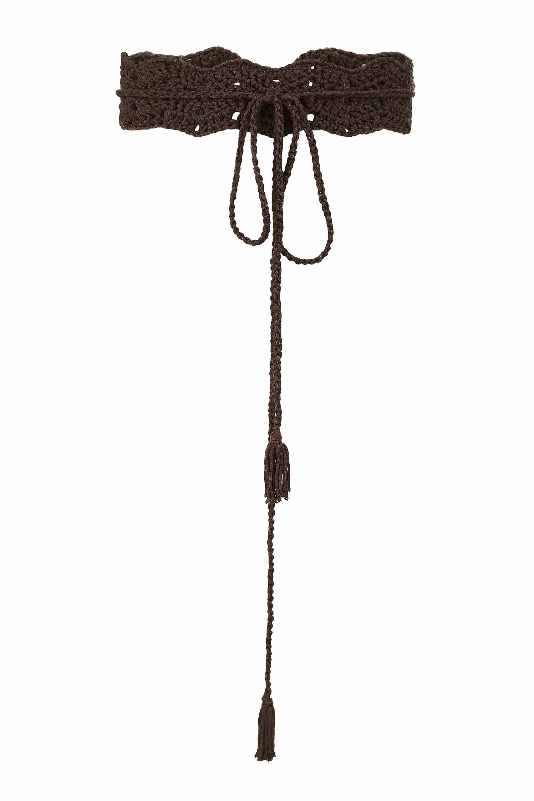 Hand Crochet Cotton Tie Belt: Bohemian Brown Waistband With Tassels