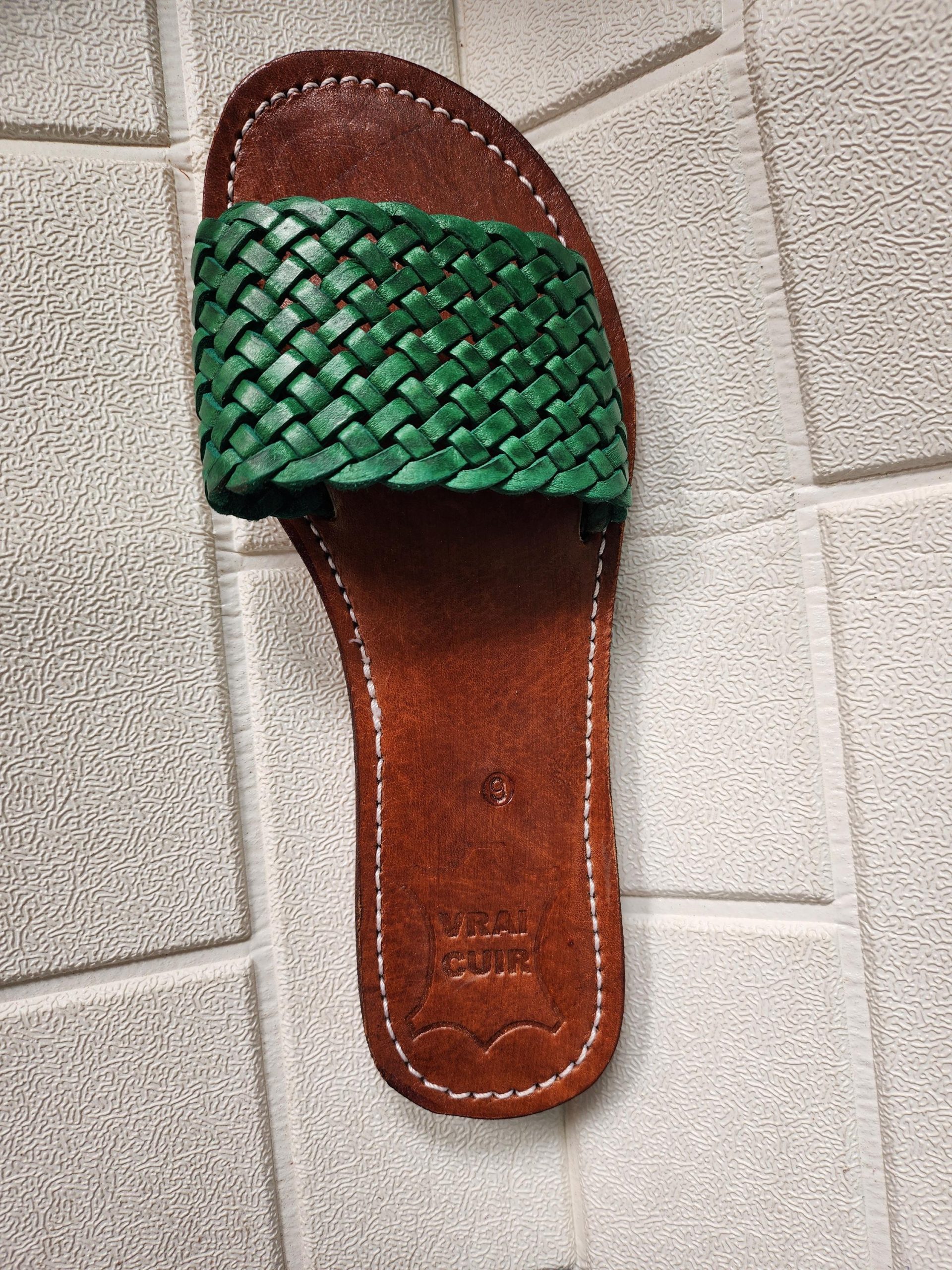 Step into timeless elegance with these handmade Moroccan sandals – a perfect blend of style and comfort! Featuring a rich brown leather sole and a stunning woven green leather upper, these handcrafted sandals are designed for effortless summer wear. Whether you’re strolling the beach or pairing them with your favorite dress, these sandals for women are a must-have.