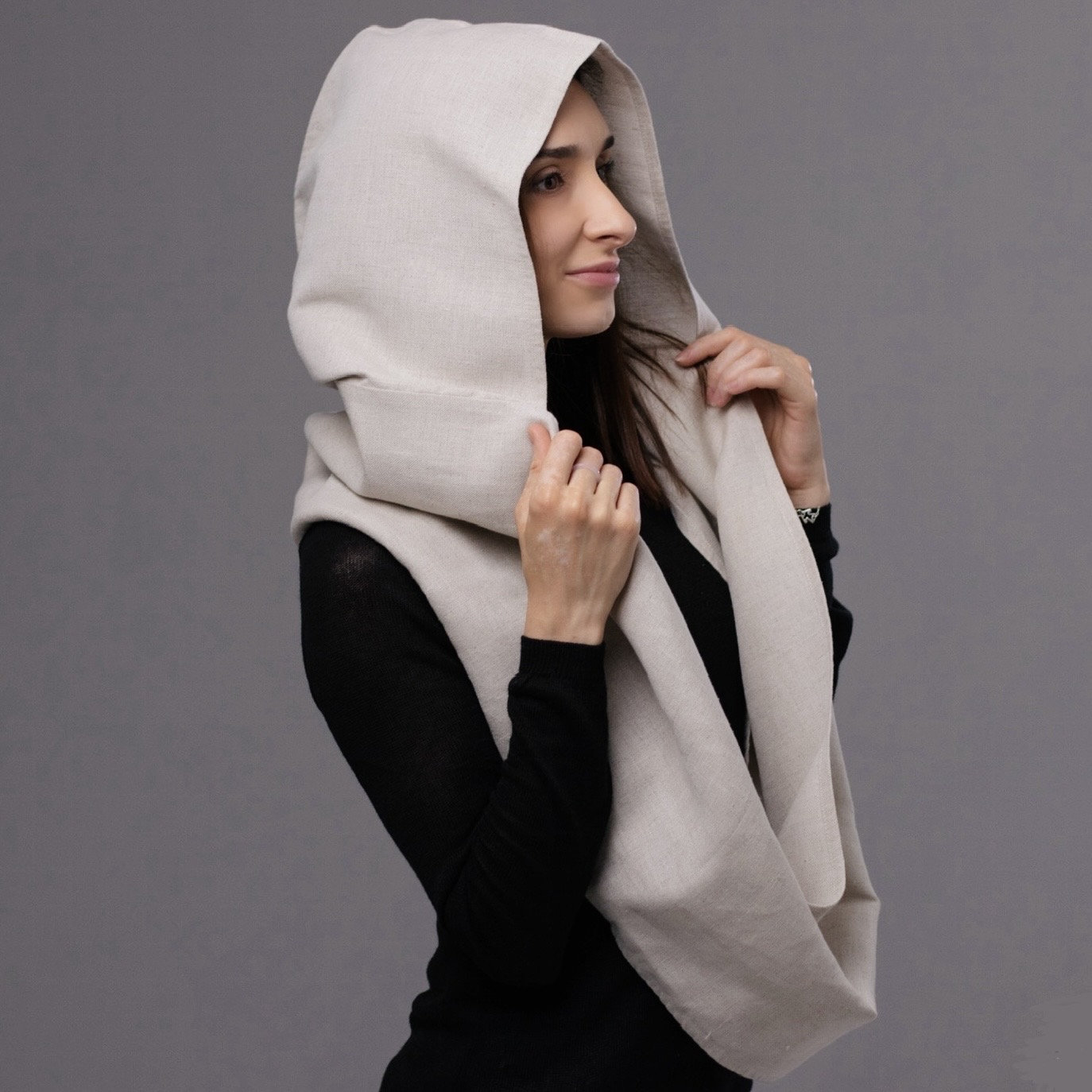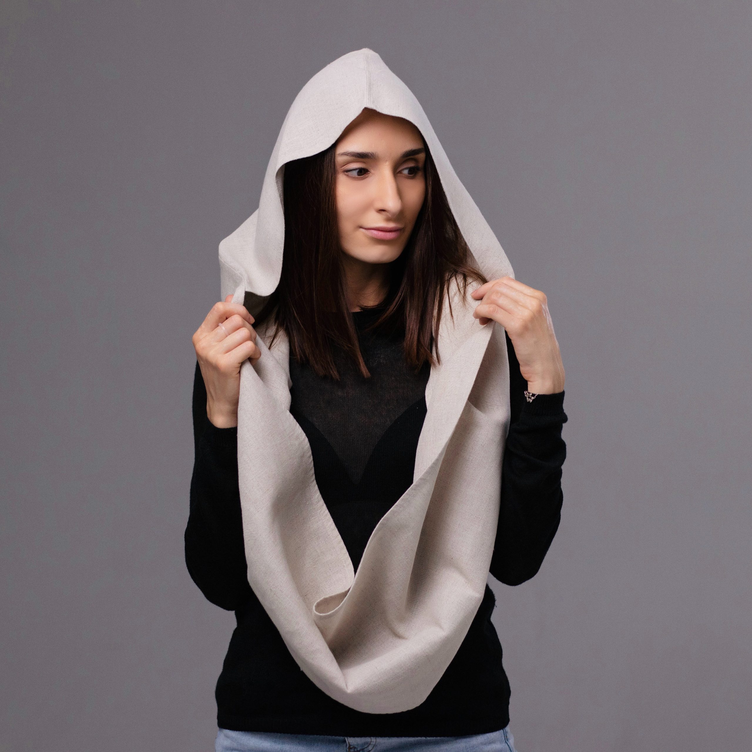 Meet your new summer essential: a hemp hooded circle scarf crafted for women who prioritize sustainability and elevated minimalism. This elegant headcover offers reliable protection from the sun and wind while embracing the natural texture and breathability of 100% hemp fabric.