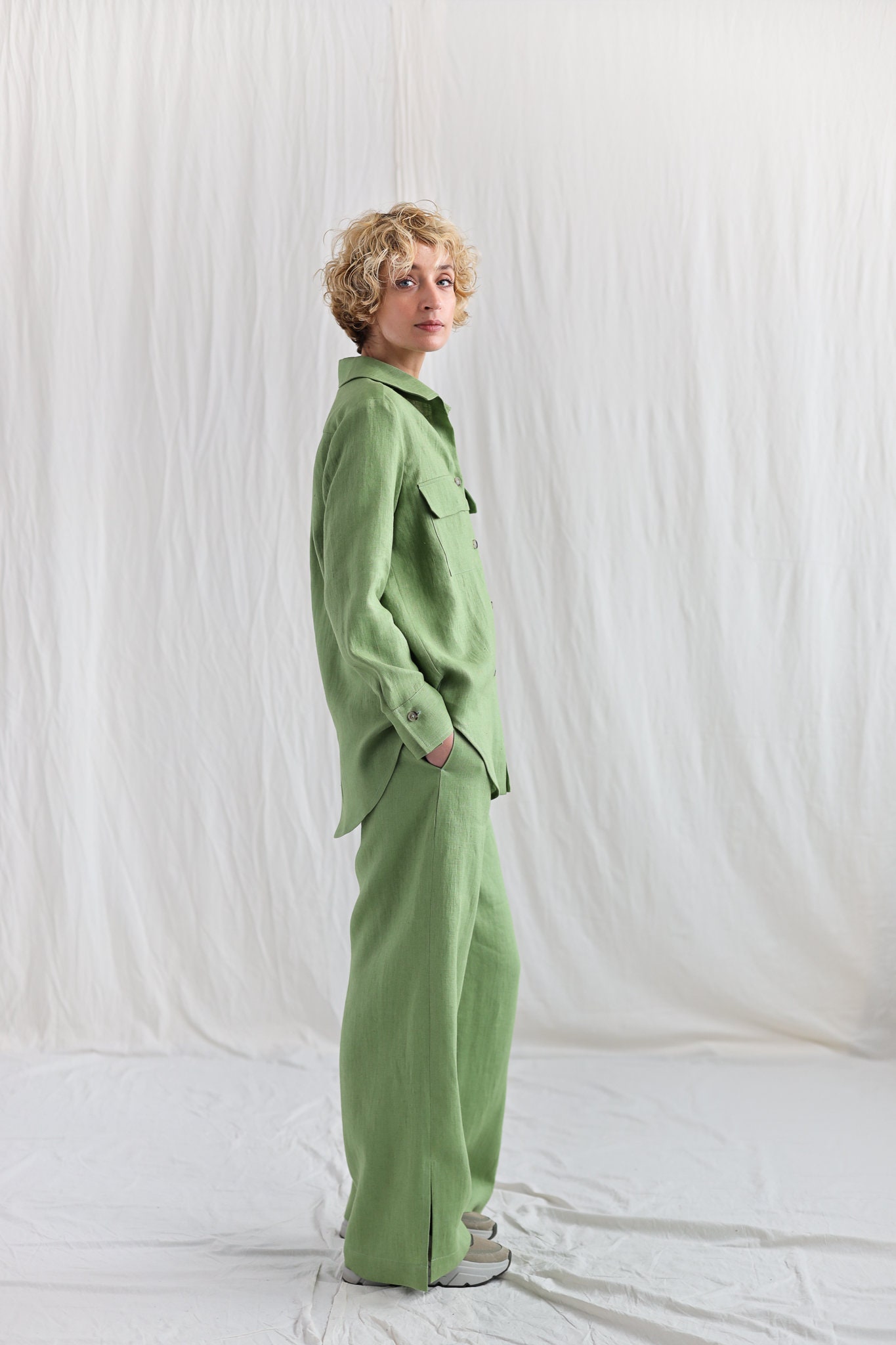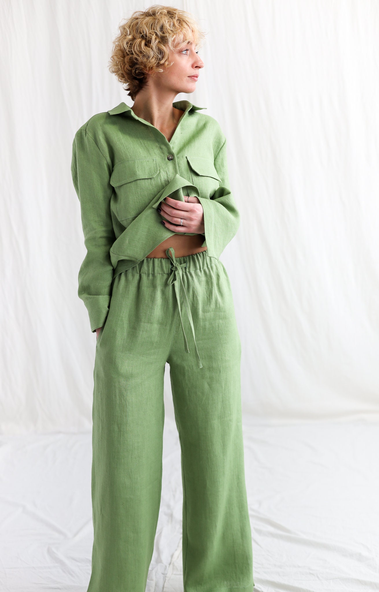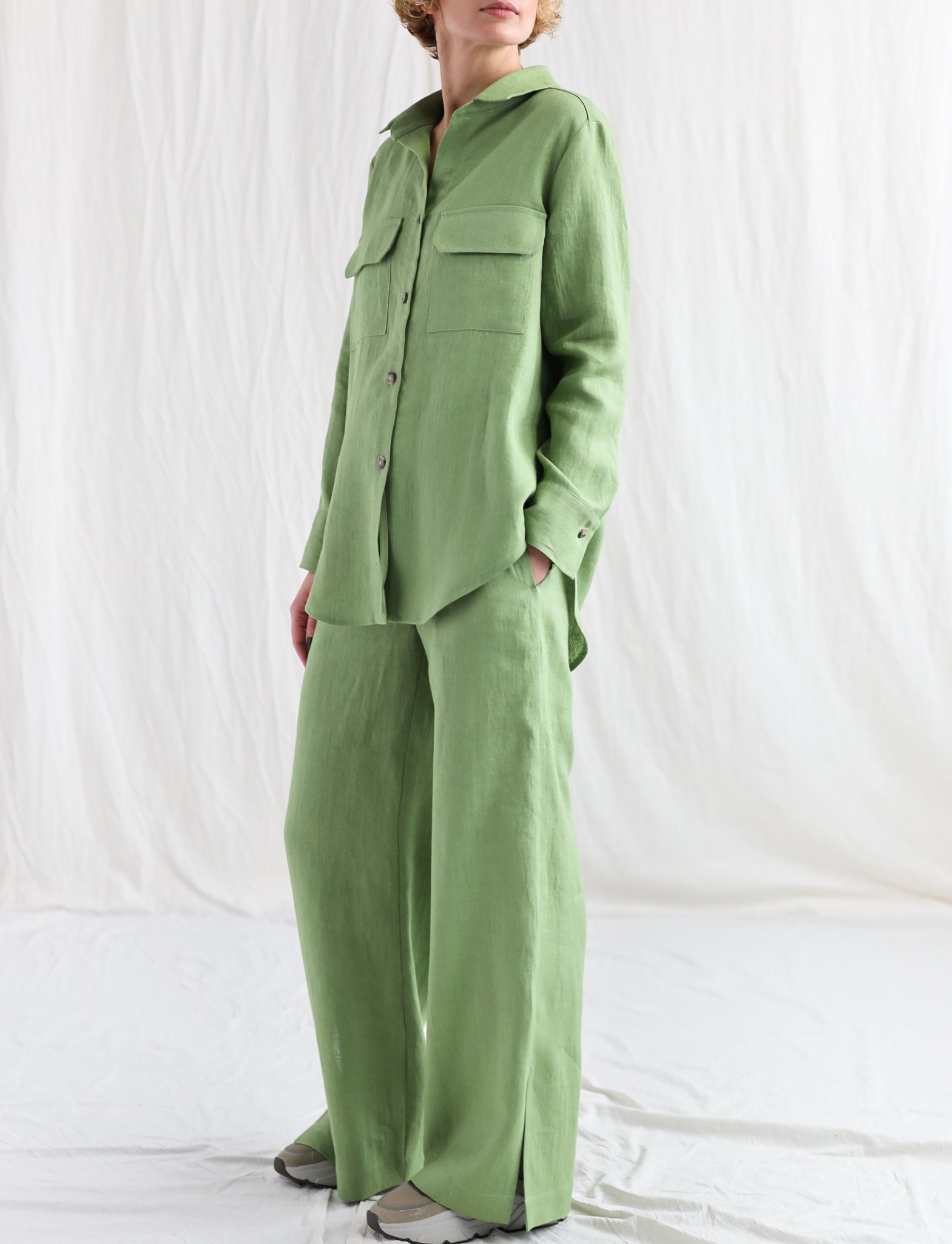 Linen Oversized Shirt And Elasticated Waist Pants Suit