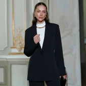 Elevate your style with this elegant women’s suit set made from premium diagonal suiting crepe. The set includes a tailored blazer and wide-leg trousers with a flattering high waist. Perfect for business. formal events. or a polished everyday look.